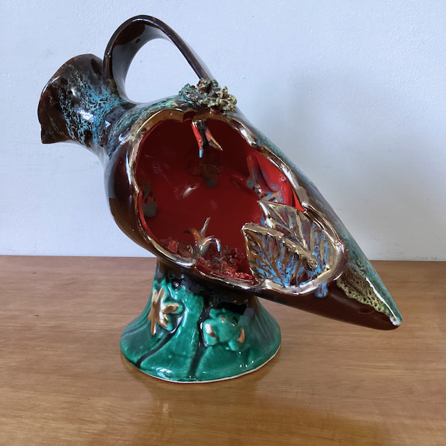 Amphore Vallauris verte, en céramique émaillée : des poissons colorés et dorés, des coraux habitent à l’intérieur ! Souvenirs des vacances estivales sur la Côte d’Azur dans les années 60-70, on les plaçait le plus souvent sur le téléviseur ! Ils ont le charme désuet de toute une époque, ils frôlent le kitsch, mais mixés […]